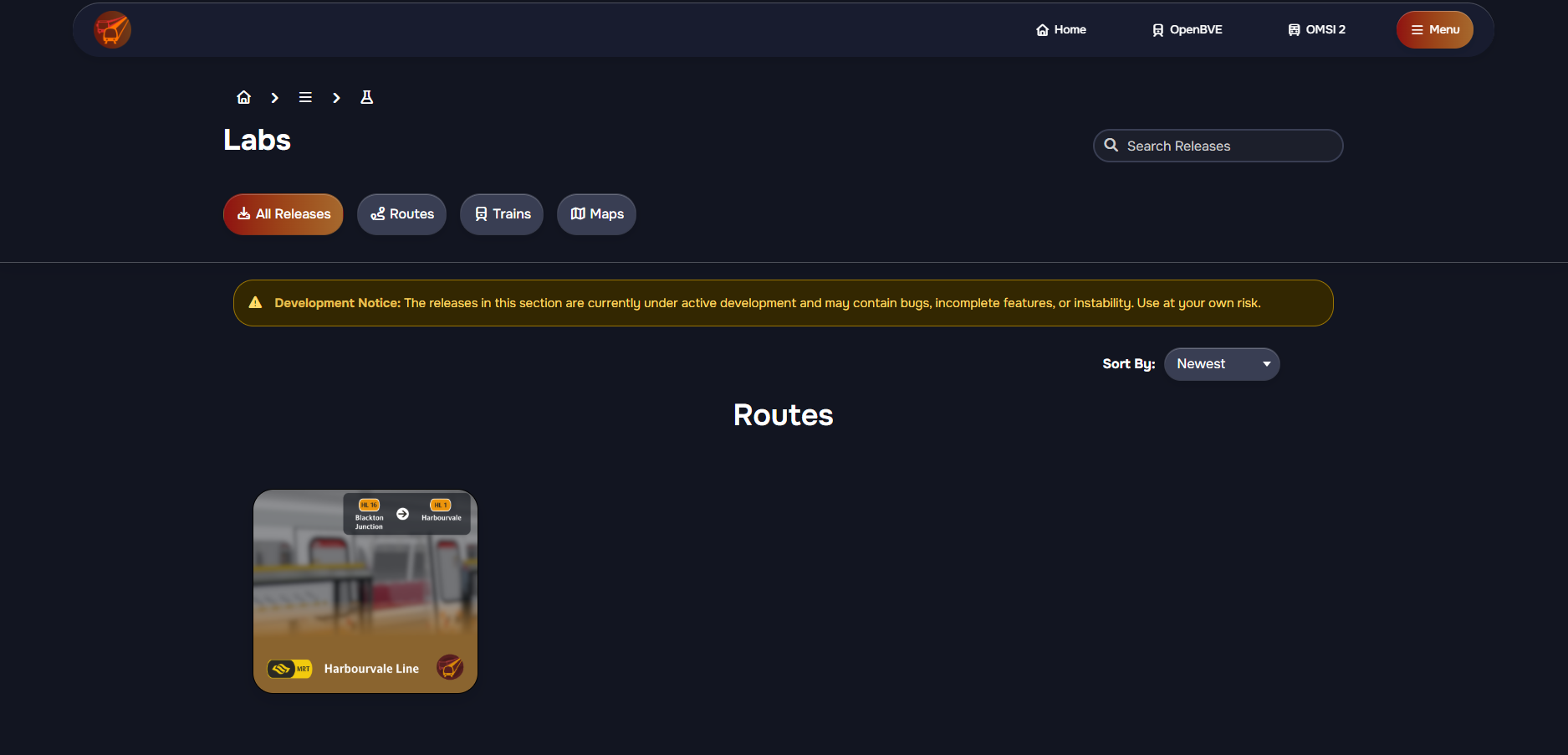 To keep you informed of the latest updates, we've introduced a smart Update Indicator on the navigation bar. This feature displays a pulsing red dot next to OpenBVE, OMSI 2, or Labs links whenever there's a new update within the last 7 days.